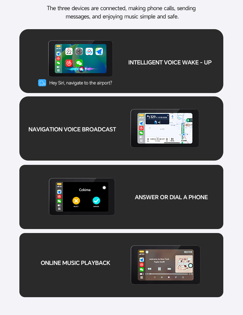 Conéctate sin esfuerzo a través de WiFi de doble banda y Bluetooth 4.2-compatible con CarPlay, Android Auto, HiCar y Carlife.