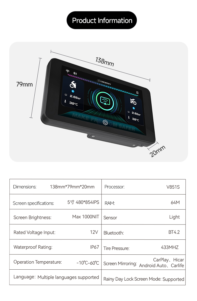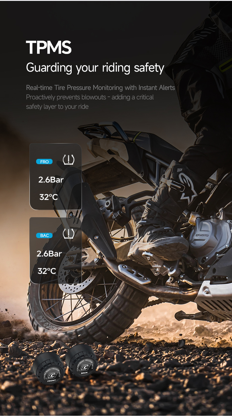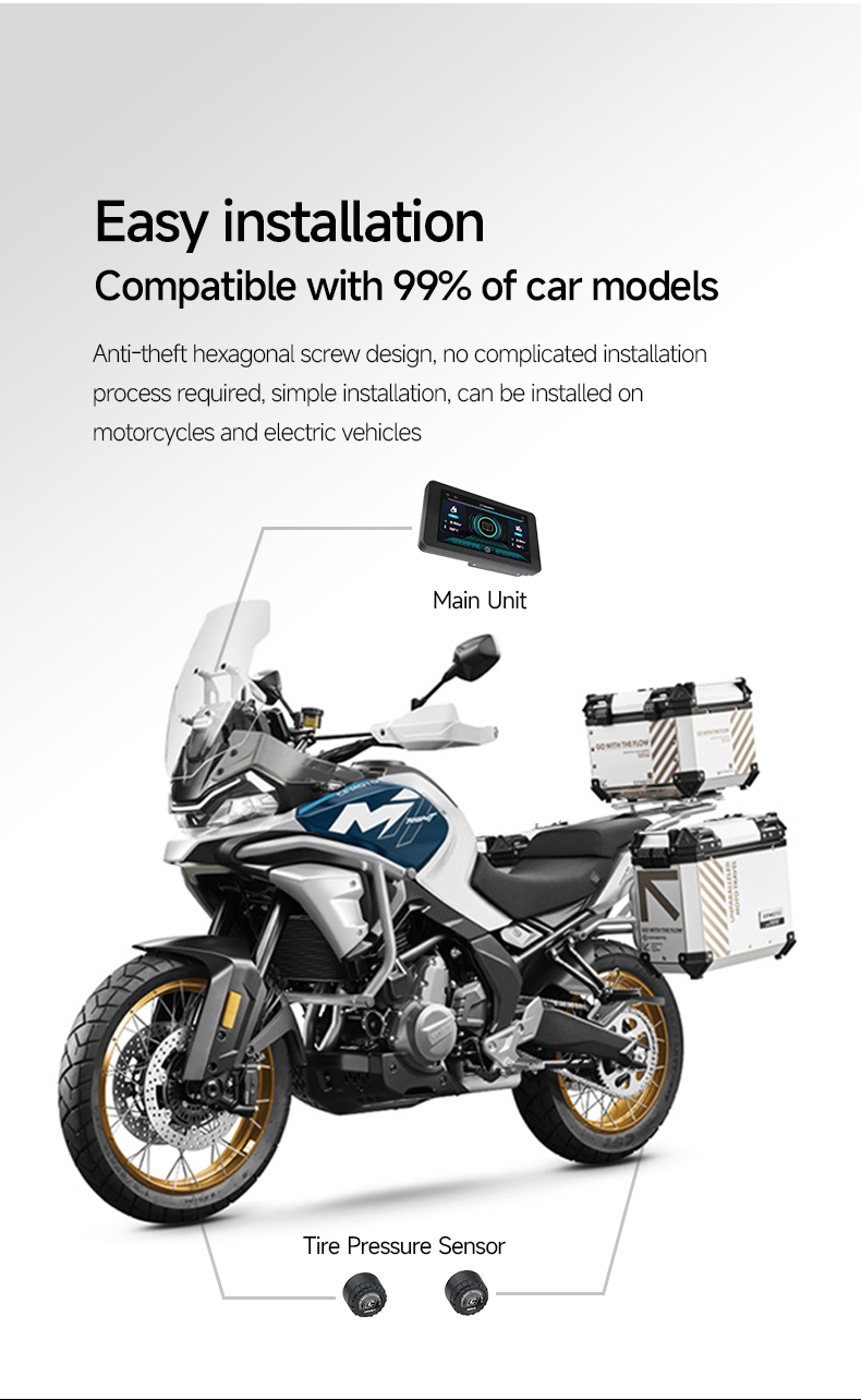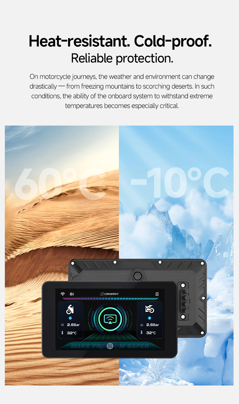 Con Protección impermeable IP67, control de la presión de los neumáticos en tiempo realy -10°C a 60°C de autonomía, está preparado para cualquier carretera o condición meteorológica.