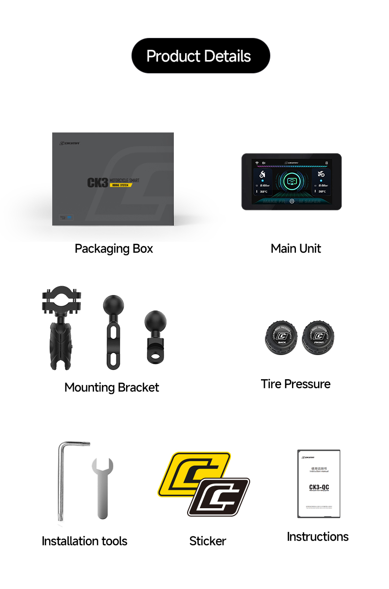 | Accesorios incluidos | Cable de alimentación principal ×1 Destornillador hexagonal ×1 Sensor de presión de neumáticos 433MHz ×1 Soporte amortiguador de aleación de aluminio ×1 Guía de inicio rápido ×1 Paquete de adhesivos de marca ×1 |