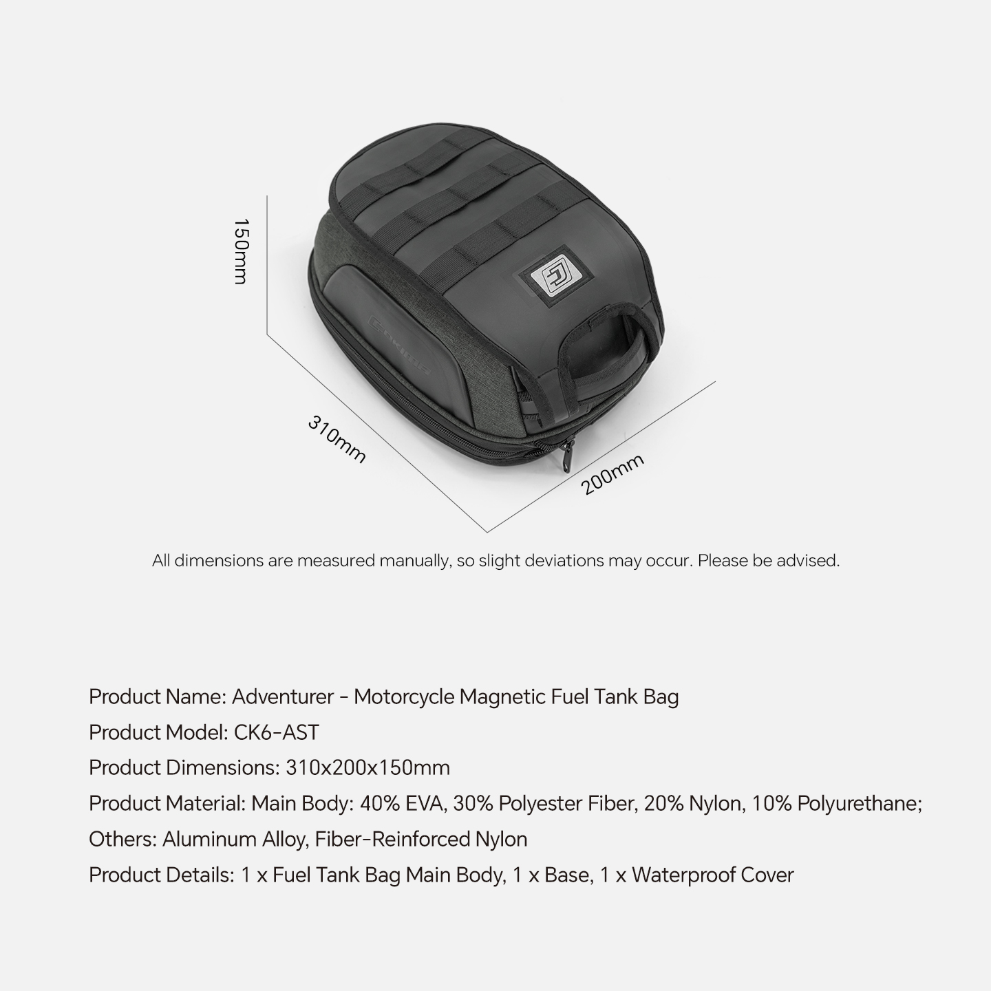 The CK6-AST Magnetic Tank Bag is designed for adventure riders who need quick access, secure storage, and strong adaptability.