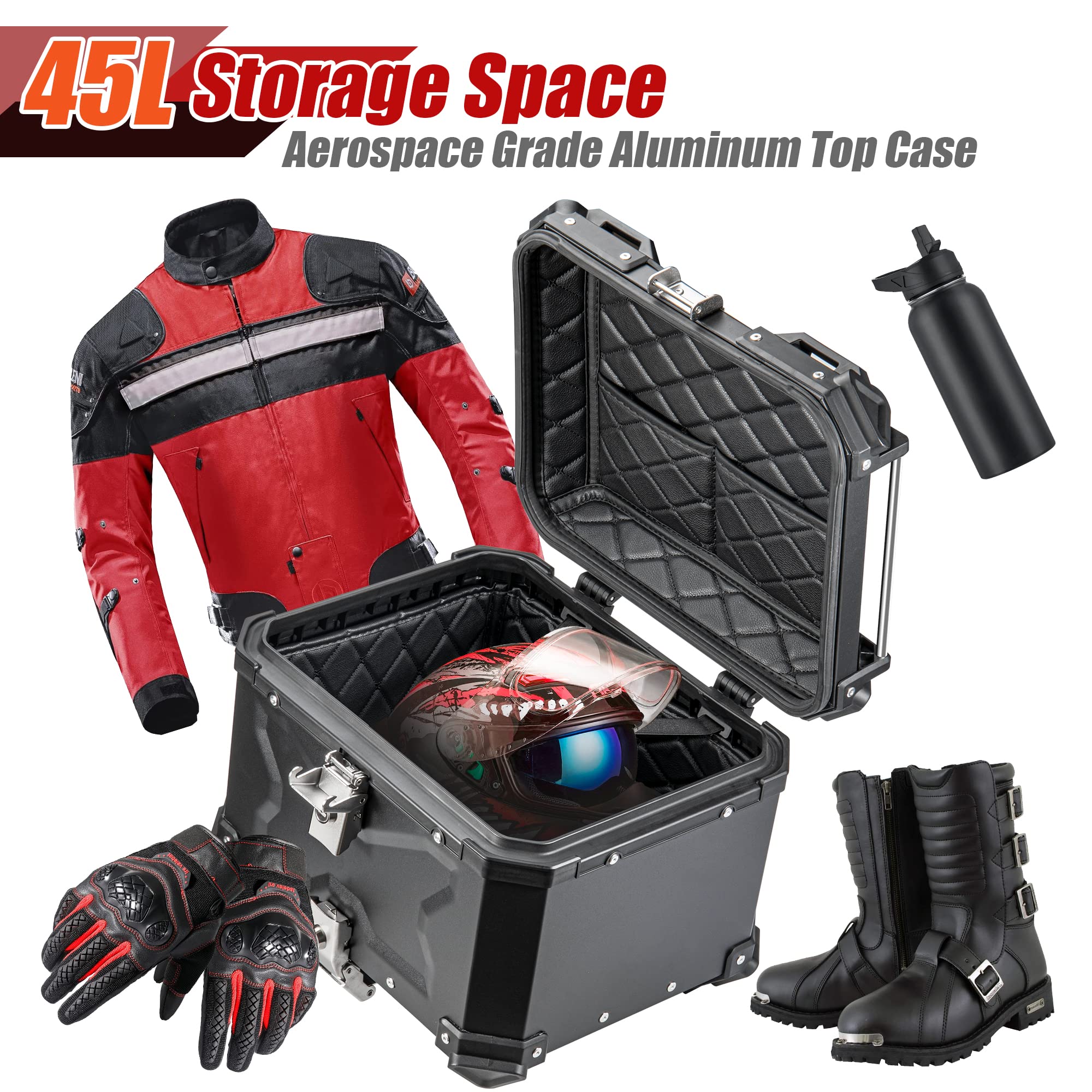 When sourcing motorcycle top cases, prioritize durability, weather resistance, and security features. Look for cases made from high-quality materials, such as aluminum or reinforced plastic, which can withstand harsh weather conditions. Security features like locking mechanisms are essential to prevent theft. Also, consider cases with expandable capacities for added versatility, catering to different customer needs. Finally, assess the ease of installation and compatibility with various motorcycle models to ensure a broader market appeal.